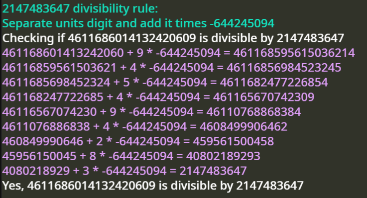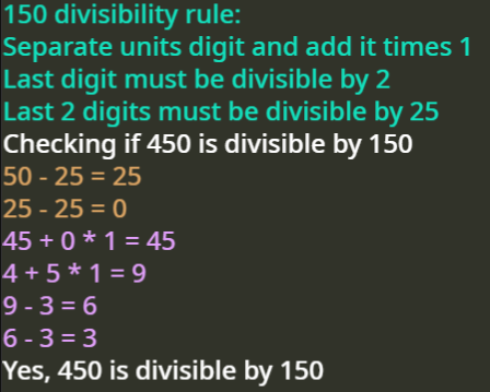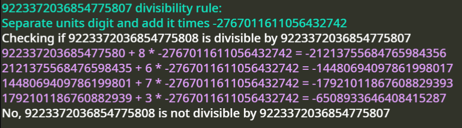 Enter any number, preferably an integer bigger than 0. This project can give you a simple rule for checking whether a number can be divided by it or not. I made the text small in case anyone wants to use really big numbers.