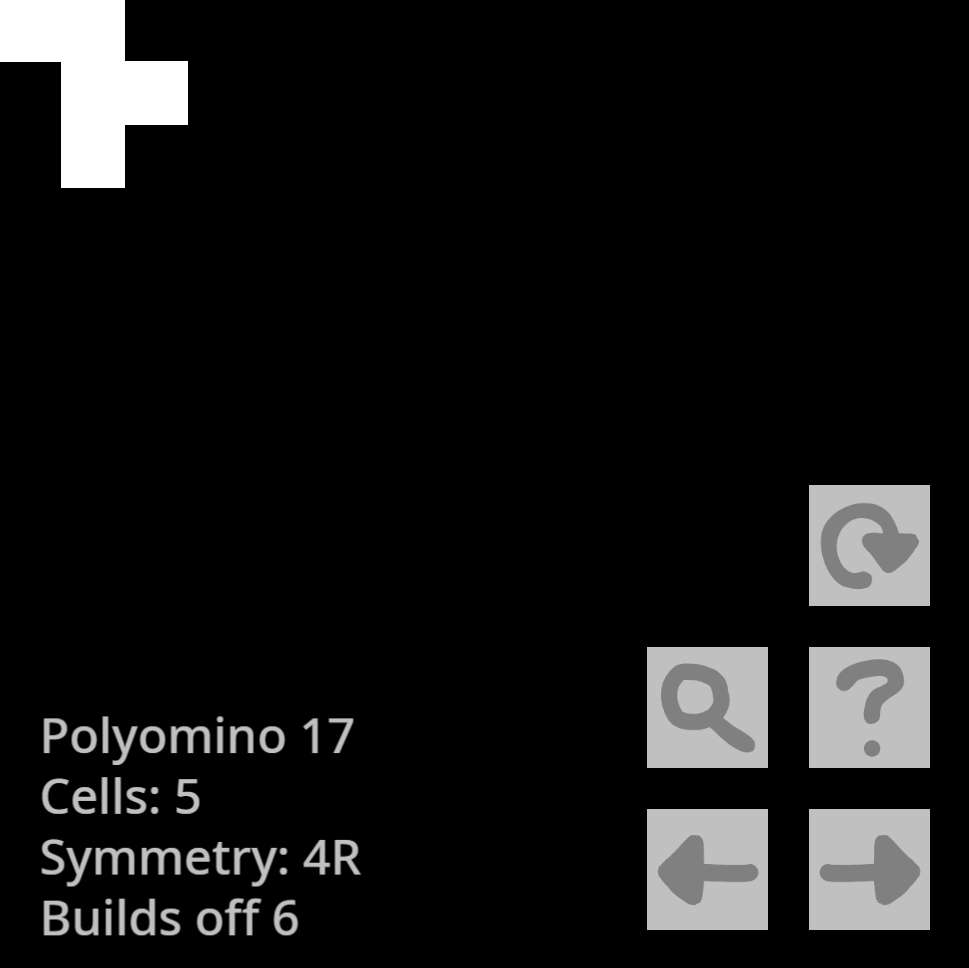 Hold shift while pressing Z or X to go to another polyomino with the same symmetry.