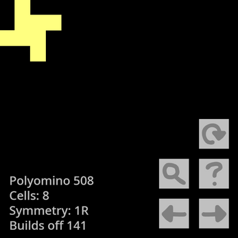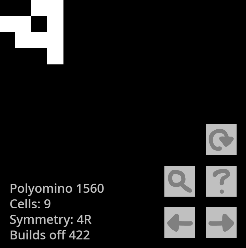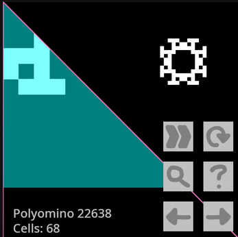 There's also another mode where you can see that every fixed polyomino corresponds to two max-symmetry free polyominoes.